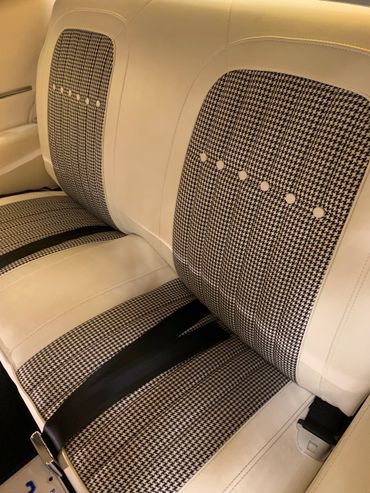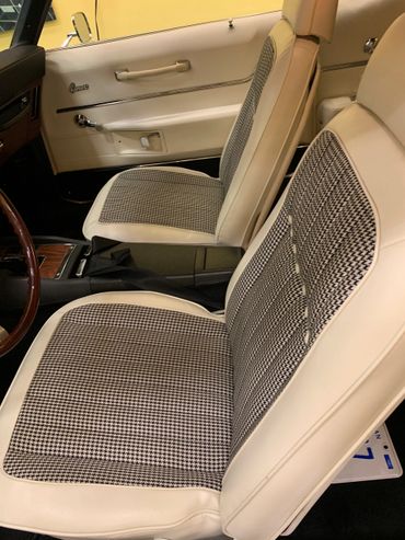 Beautiful 'Ih" Ivory Houndstooth interior that is trim tag correct with unique fold down rear seat. This also includes the upgraded custom door panels and wood grain accents. U 17 Center Console with fuel, battery, temerpature and oil gauges. Correct 8,000 RPM Tachometer and beautiful Rosewood steering wheel.